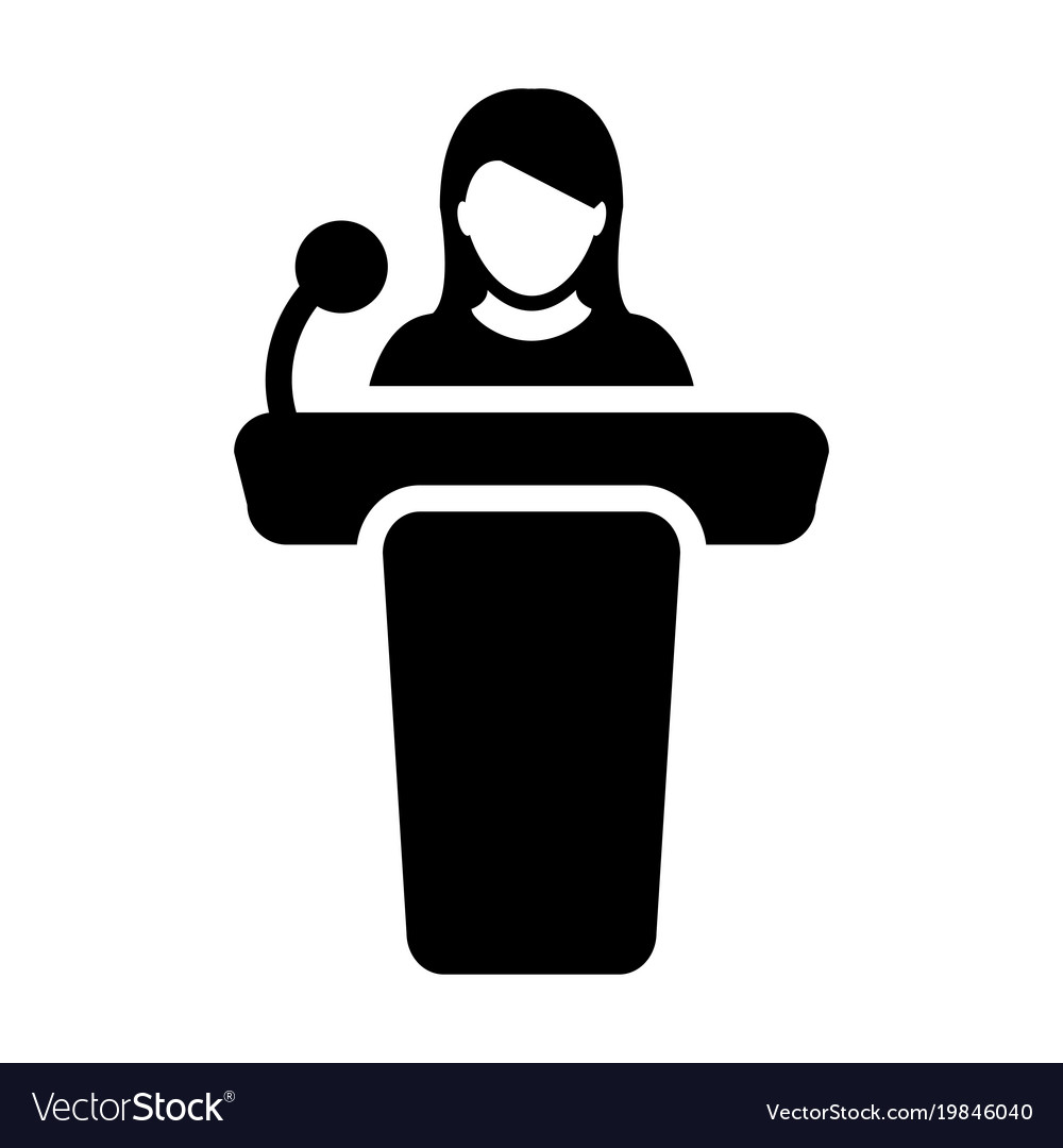 Public Speaking Icon Vector Female Person on Podium for Presentation and Seminar for People with Microphone in Glyph Pictogram Symbol illustration